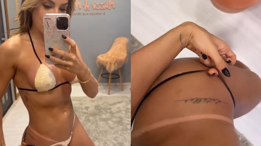 Mas o que chamou a atenção dos fãs foi a marquinha de biquíni que ela exibiu, quase mostrando o que não deveria, durante uma sessão de bronzeamento.