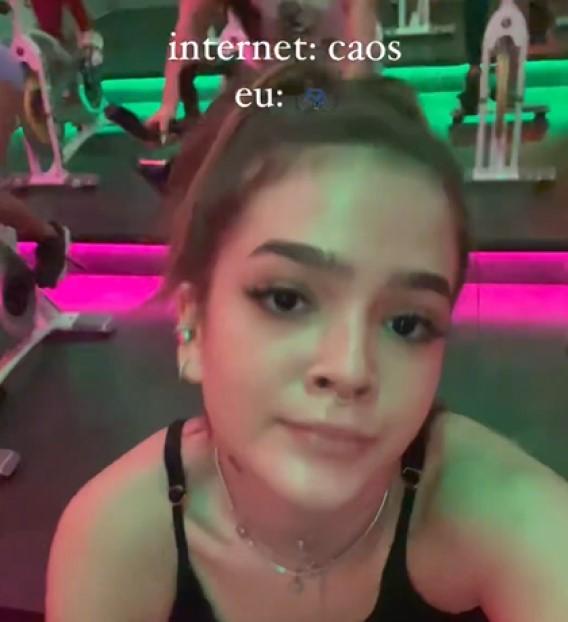 A artista decidiu mostrar seu lado descontraído enquanto suava a camisa em uma academia. Em uma gravação em que aparece pedalando em uma bicicleta, ela escreveu: “Internet = caos. Eu = [emoji de bicicleta]”, deixando claro que não se deixa abalar pelos comentários negativos.