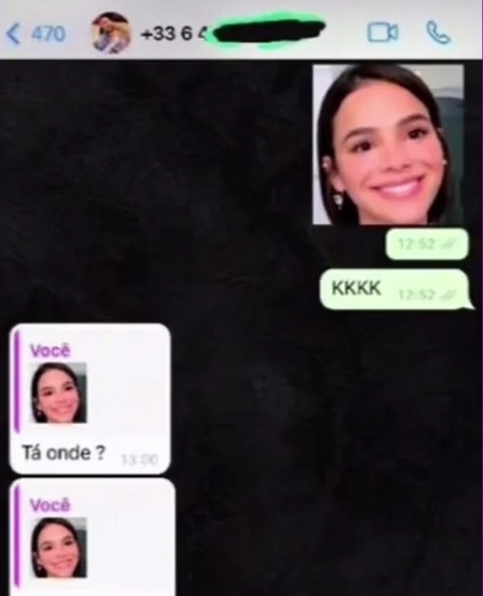 No print divulgado, a influenciadora protegeu a privacidade do atacante, borrando seu número de telefone, mas deixou visível o código da França e sua foto de perfil. Ao ver a figurinha de Bruna, Neymar respondeu com um comentário curto e direto: “Aí é f*da”.