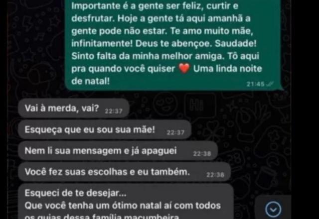 Em print de uma conversa por meio de aplicativo, Silvana ironizou religião dos familiares de seu genro, André Luiz Frambach: