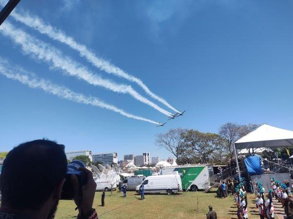 O desfile cívico-militar do 7 de setembro em Brasília terminou, às 11h05, logo após a Esquadrilha da Fumaça fazer sua tradicional apresentação. Nesta, aeronaves Super Tucano realizaram uma série de manobras no céu de Brasília, incluindo looping, cruzamento e giro simultâneo.