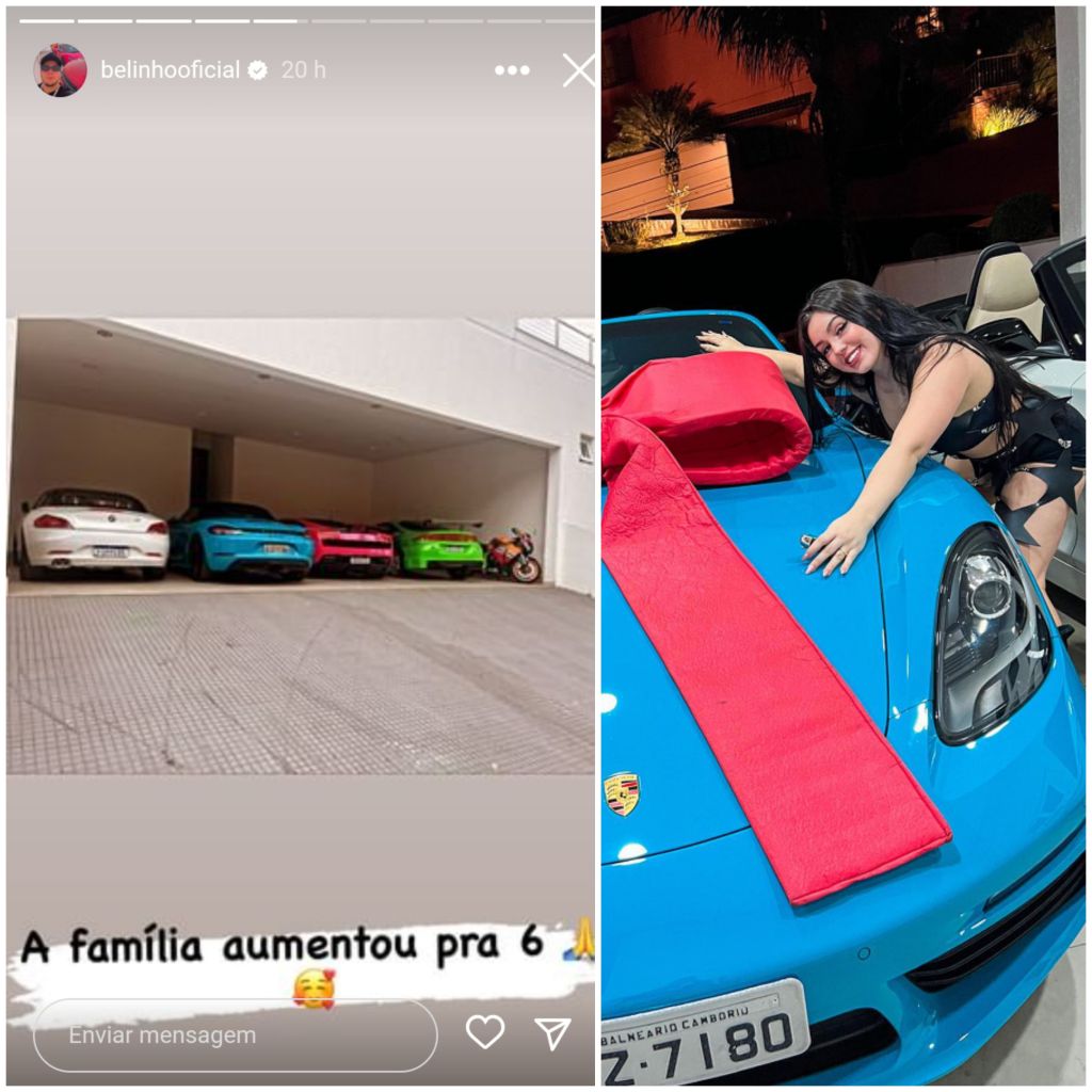 Melody usou o Instagram Stories para mostrar a garagem de sua casa, que agora está repleta de veículos luxuosos, enquanto compartilhava a novidade. “Gente, olha essa garagem como ficou, que incrível! Esse aqui é o presente da Bella, ela dezoitou”, declarou enquanto revelava o carrão azul com um laço vermelho que deu para Bella. O veículo é avaliado em cerca de R$ 520 mil.