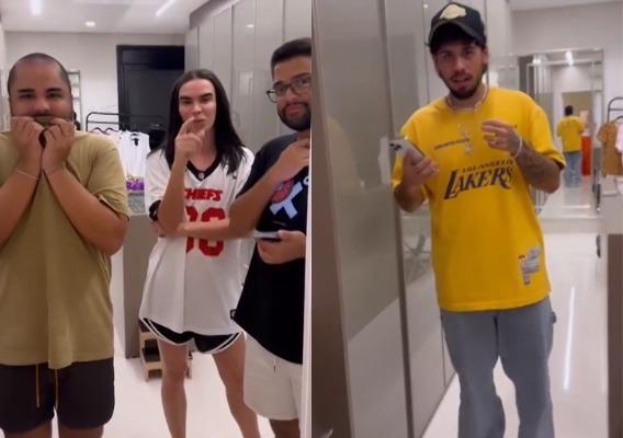 Em um vídeo compartilhado nas redes sociais, a loira exibiu o teste de gravidez e fez com que todos ficassem esperando ansiosamente pelo resultado, enquanto ela ria da situação. Quando o cantor chegou, todos se juntaram à brincadeira, e o filho de Leonardo acabou acreditando por alguns momentos que eles estavam realmente esperando um novo bebê.