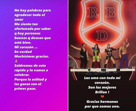 Anahí também dedicou palavras de carinho aos colegas de banda, Dulce Maria, Maite Perroni, Christopher von Uckermann e Christian Chávez: “Os amo com todo meu coração. São os melhores, brilham!! Obrigada irmãos por nós sermos um só”. Fique por dentro das atualizações sobre a recuperação da cantora e suas mensagens emocionantes para os fãs e companheiros de grupo.