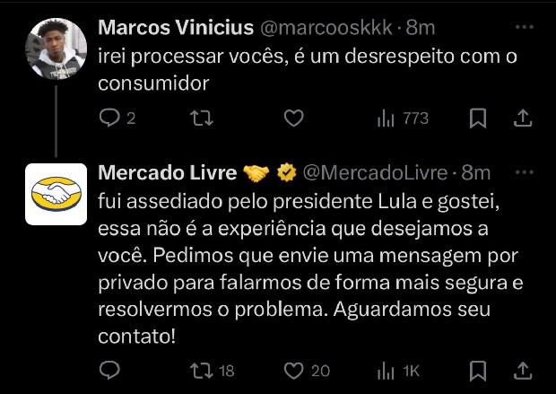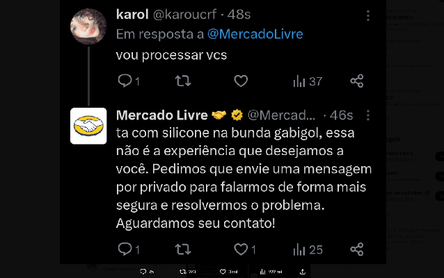 Ao perceberem que o perfil do Mercado Livre sempre citava o nome de quem o mencionava, usuários do X passaram a trocar seus nomes com frases ofensivas, fazendo com que a empresa replicasse as ofensas.