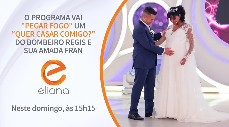 Chama o bombeiro no Programa Eliana deste domingo, 07 de abril! Mas, desta vez, não são os assistentes de palco da atração que vão entrar em cena. No “Quer Casar Comigo?“, a apresentadora traz a história de um casal apaixonado, formado pelo bombeiro Regis e a agente de segurança Fran.