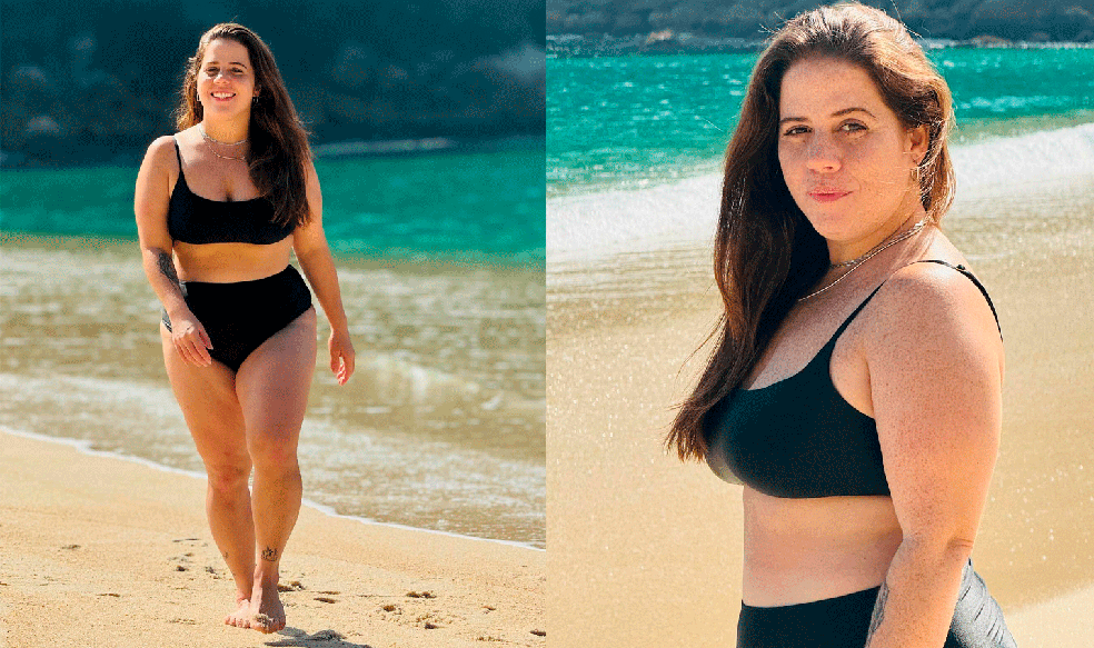 “Um brilho que só férias podem proporcionar. Viva minhas sardas, minhas curvas, o sol e o mar de Ilha Grande”, escreveu ela.