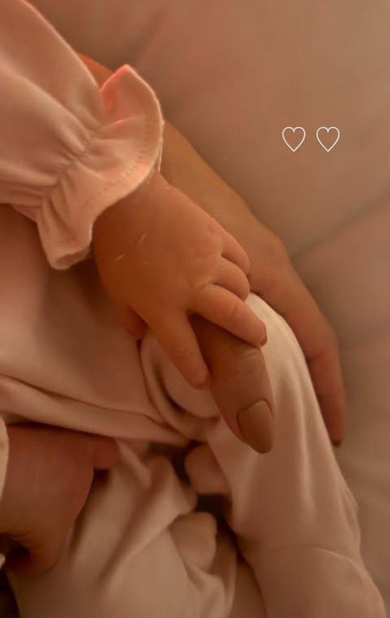 Jade Magalhães encantou fãs ao publicar nova foto da sua filha com Luan Santana. O registro é da mãozinha de Serena segurando a mão da modelo e influenciadora.