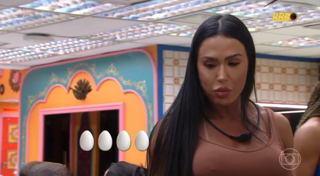 FOCADA! A musa fitness Gracyanne Barbosa, que entrou em dupla com a irmã Giovanna, acabou de entrar na casa do BBB 25, mas já comeu nove ovo cozidos na tarde desta segunda-feira (13). A edição do programa fez uma brincaderia e contabilizou os ovos comidos.