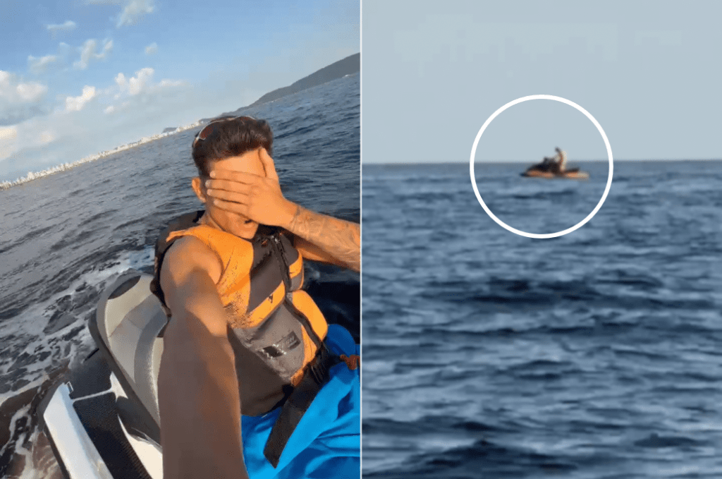 “Quando estava voltando para a marina, onde eu ia guardar o jet ski, acabei encontrando esse casal em alto mar, fiz esse vídeo na brincadeira e ele acabou viralizando”, explicou Willian ao VTV News (afilhada do SBT). O flagrante não demorou a chamar a atenção na internet.