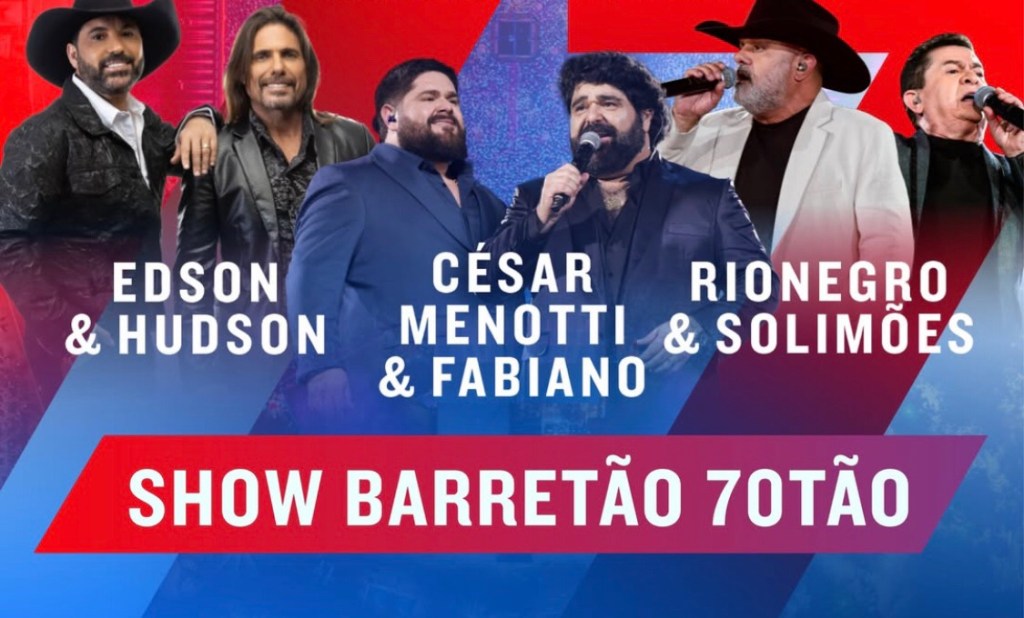 Além da música tema e do clipe, o show “Barretão 70tão” será uma das atrações da Festa, no dia 30 de agosto. De acordo com a organização, os artistas estão preparando um repertório exclusivo, onde falam sobre a longa história com Barretos.