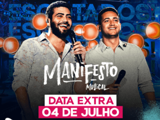 Os irmãos tocantinenses, apresentarão pela primeira vez o show “Manifesto Musical”, que reúne os sucessos que consagram Henrique & Juliano como um dos maiores artistas do país. Estas apresentações são resultado da parceria entre a 30e, maior companhia brasileira de entretenimento ao vivo, com a Enter Eventos e a Dois.M — escritório da dupla, responsável também pela gestão das carreiras de Grelo, Rayane & Rafaela e Patrick Costa. E, comprovam o tamanho do prestígio dos brasileiros com a música mais popular do país, o sertanejo.