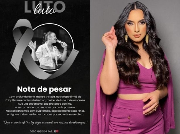 A confirmação da morte foi feita pela equipe da cantora por meio de um comunicado emocionado: “Com profunda dor e imensa tristeza, nos despedimos de Faby Bezerra, cantora talentosa, mulher de luz e mãe amorosa”. Ela era casada e deixa quatro filhos, o mais novo com apenas dois anos.