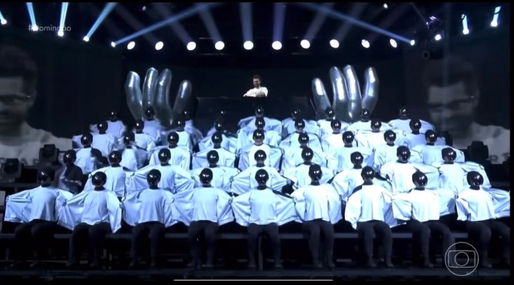 Alok transformou o palco do Domingão do Huck, neste domingo (22), numa experiência audiovisual com dança, projeção humana e uma performance sincronizada com o grupo Urban Theory com dançarinos treinados no Brasil.