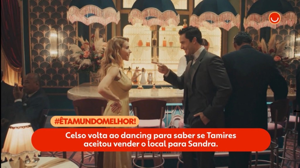 No próximo capítulo da novela das 6, ele volta ao dancing para saber se Tamires(Monique Alfradique) já tem uma resposta sobre a proposta dele de comprar o estabelecimento para Sandra(Flávia Alessandra).