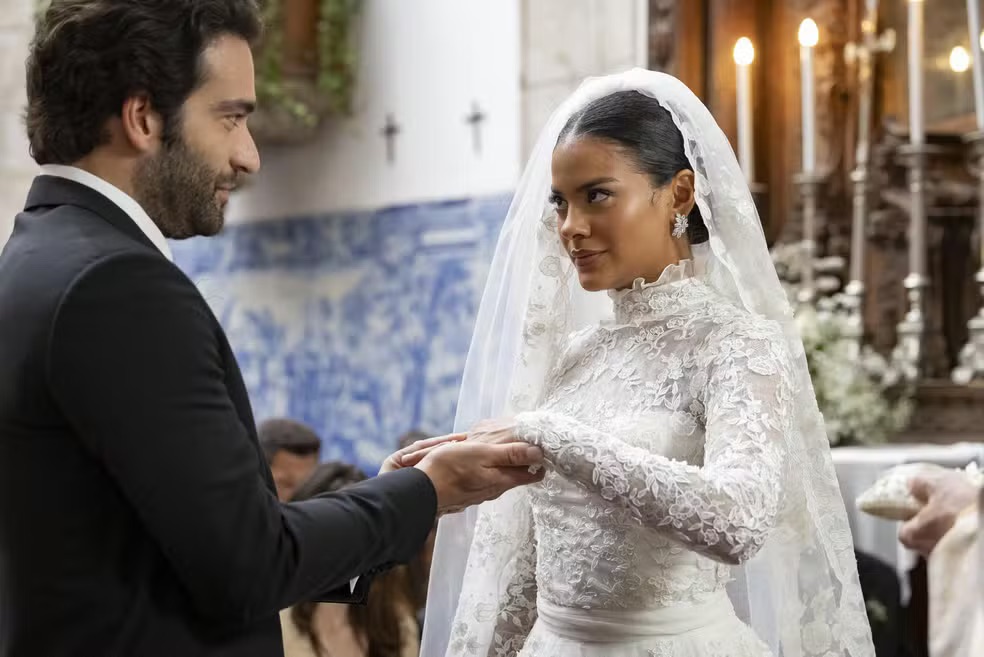 Uma das sequências mais esperadas e que marca uma importante virada em Vale Tudo se aproxima: o casamento de Fátima (Bella Campos) e Afonso (Humberto Carrão). Em cenas previstas para irem ao ar a partir do capítulo desta quarta-feira (9), a alpinista social sobe ao altar com o herdeiro dos Roitman numa celebração de muito requinte e bom gosto. Sob o olhar atento dos convidados, os noivos selam sua união com um beijo depois de trocar votos de amor, honra e respeito e seguem para a recepção que acontece na mansão de Celina (Malu Galli).