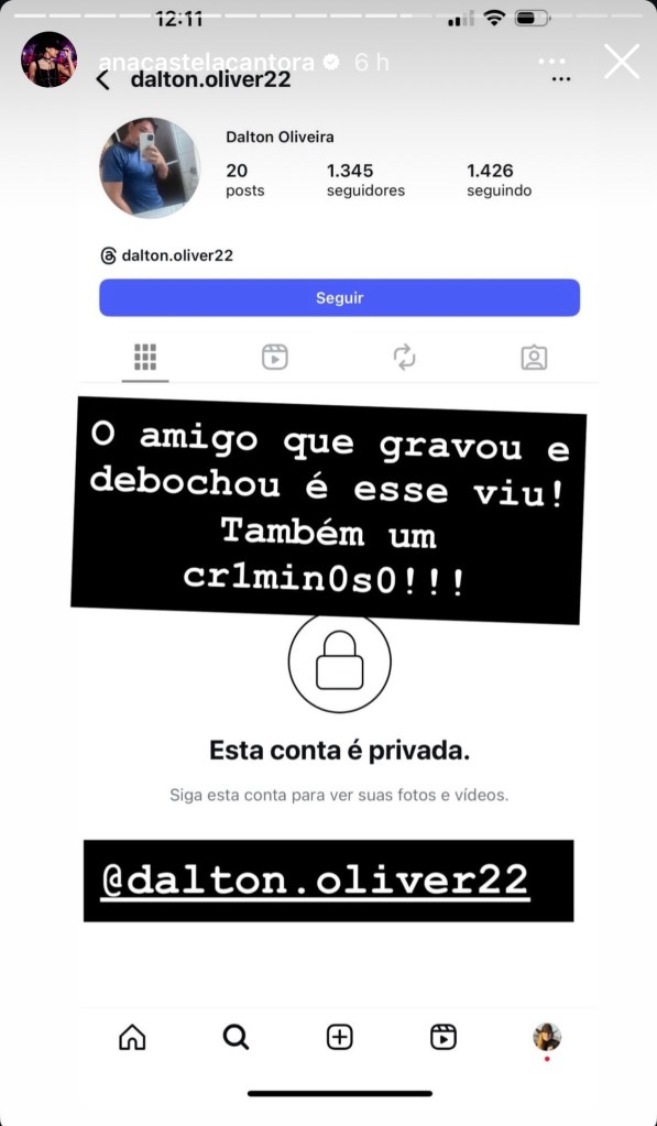 A cantora expôs fotos do suposto agressor montado no animal e de seu colega, que teria filmado e debochado da ação: “Está aí a casa do verme de Bananal, que cortou as patas de um cavalo e o deixou ‘na rua’ agonizando. Me ajudem a deixar esse verme famoso”, mobilizou a estrela.