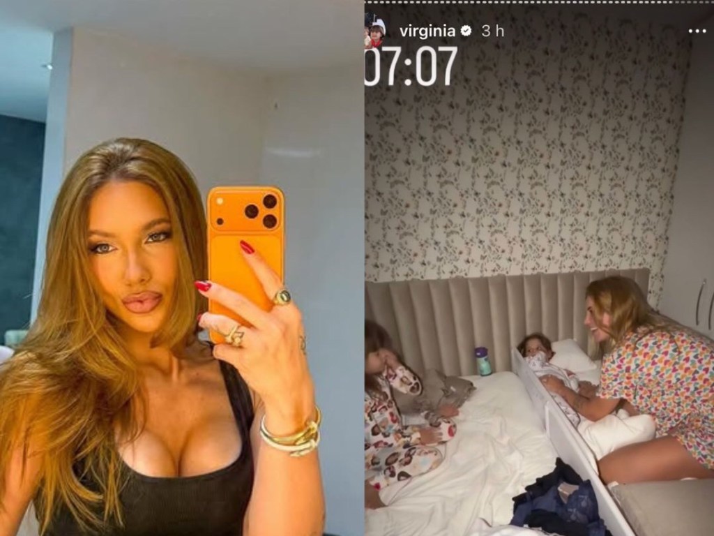 A criadora de conteúdo pegou a segunda filha no colo, deu um abraço e beijos. Ela escreveu na legenda: “Bom dia, hoje é dia dela. Mariazinha perdidinha de sono, ‘desmaiada de sono’”.