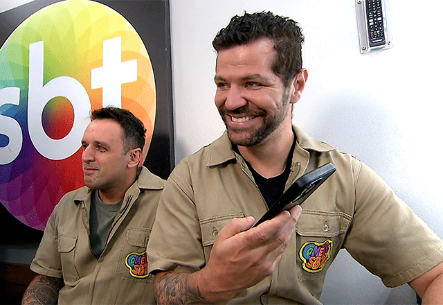 Bons de lábia, mesmo deixando Cariúcha desconfiada, eles conseguiram que ela soprasse no microfone, mostrasse os olhos e ainda fizesse polichinelos. Confira o que Victor Sarro e Rodrigo Capella aprontaram: