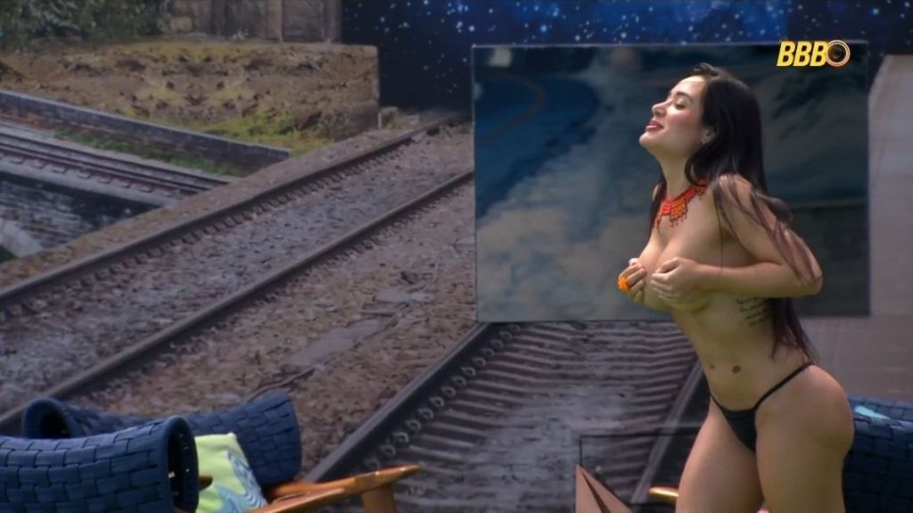 “Vem, amiga!”, diz Jordana a Marciele, aos risos. A dançarina ajuda a advogada a vestir a parte superior do biquíni novamente. “Essa é a minha guerreira!”, reage a Cunhã-Poranga. “Pronto, paguei [a promessa]! Obrigada, Brasil”, continua a brasiliense.