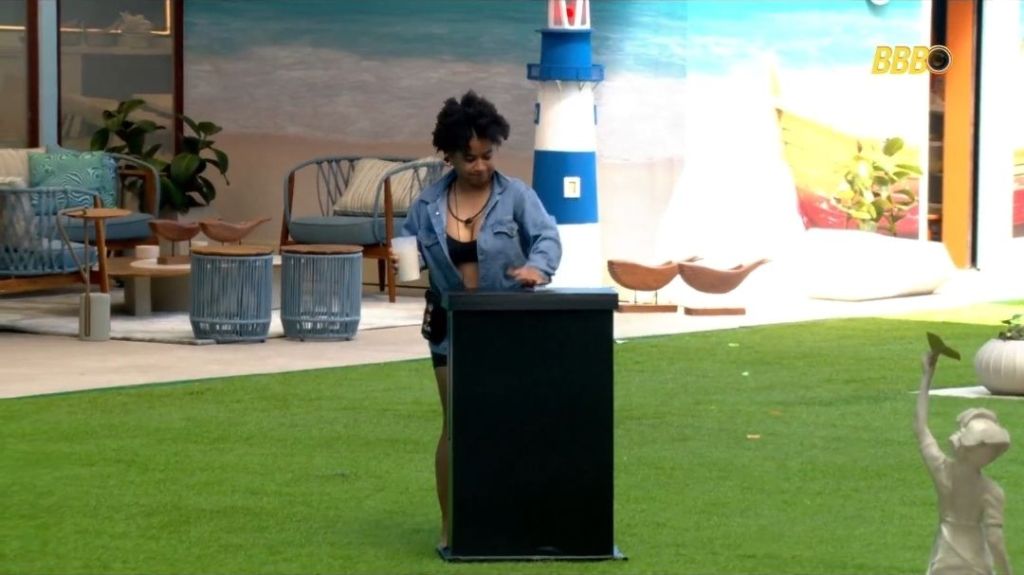 Milena aperta o Botão Misterioso do BBB 26 nesta quinta-feira (9). A sister observa o totem no gramado e corre para apertá-lo. “Tinha um botão, eu apertei! Se for Paredão, eu estou nele”, grita a sister enquanto a sirene toca pela casa.